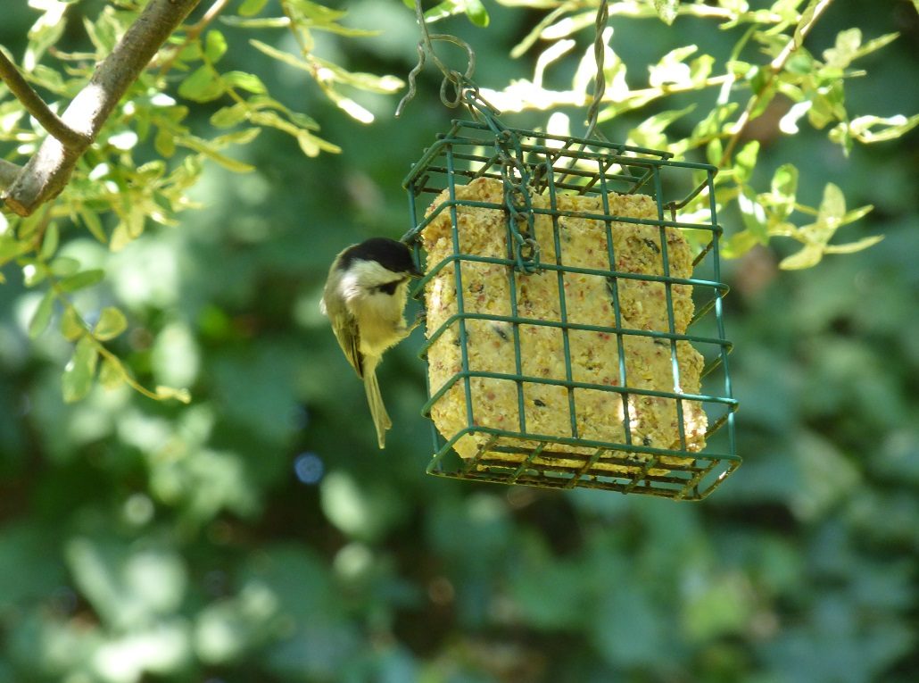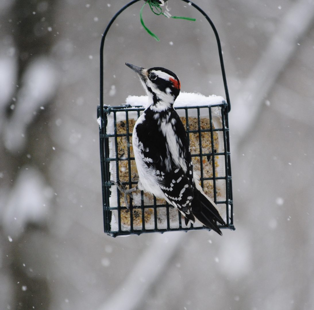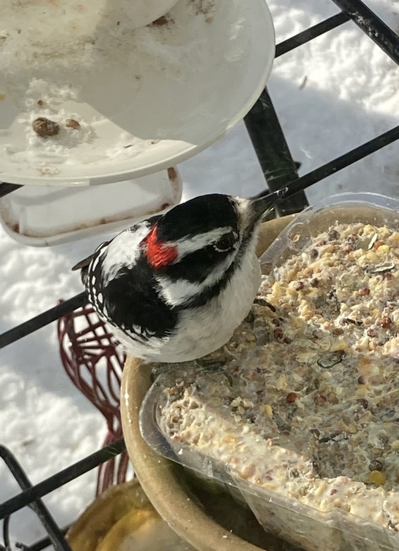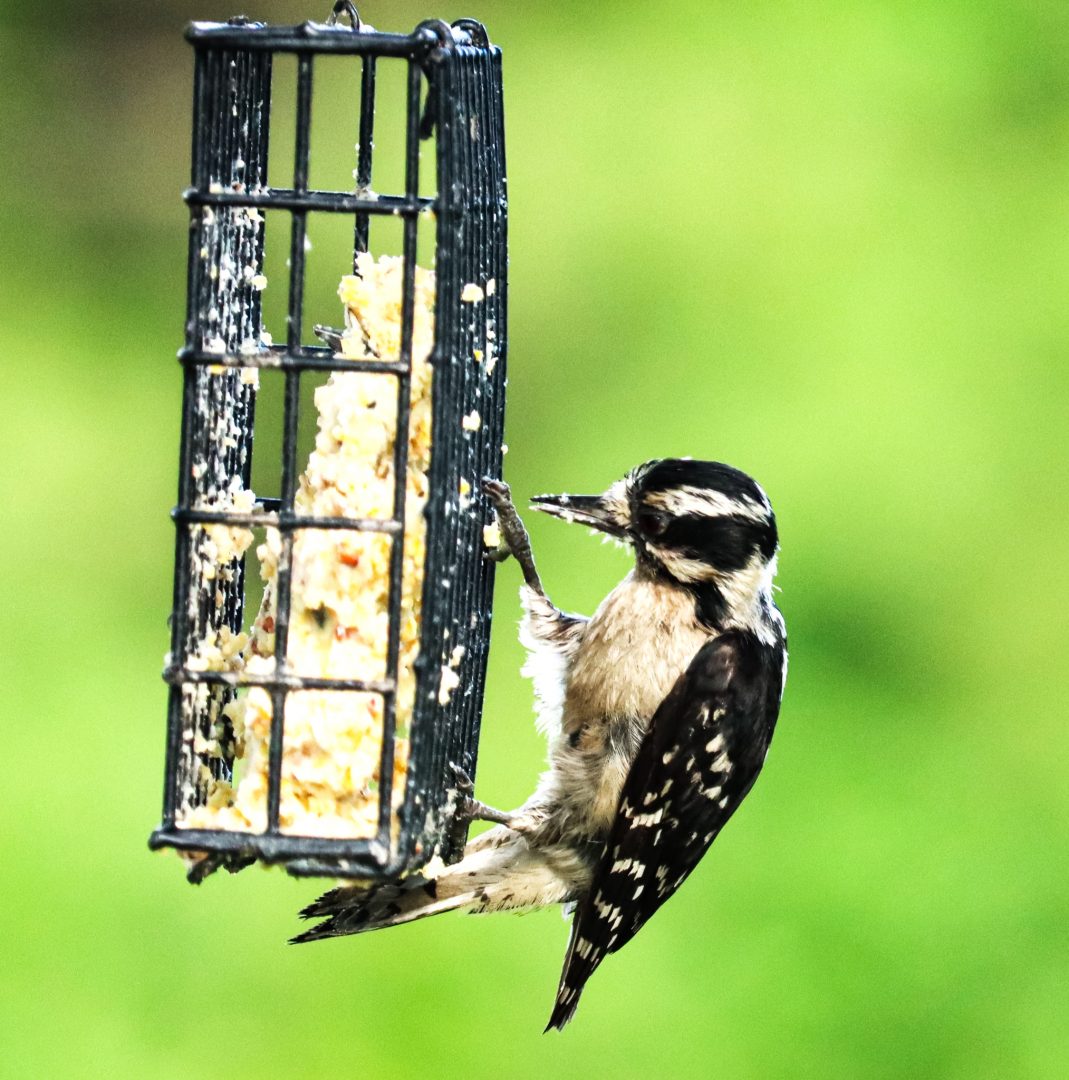 A suet tea party for my downy woodpecker friend