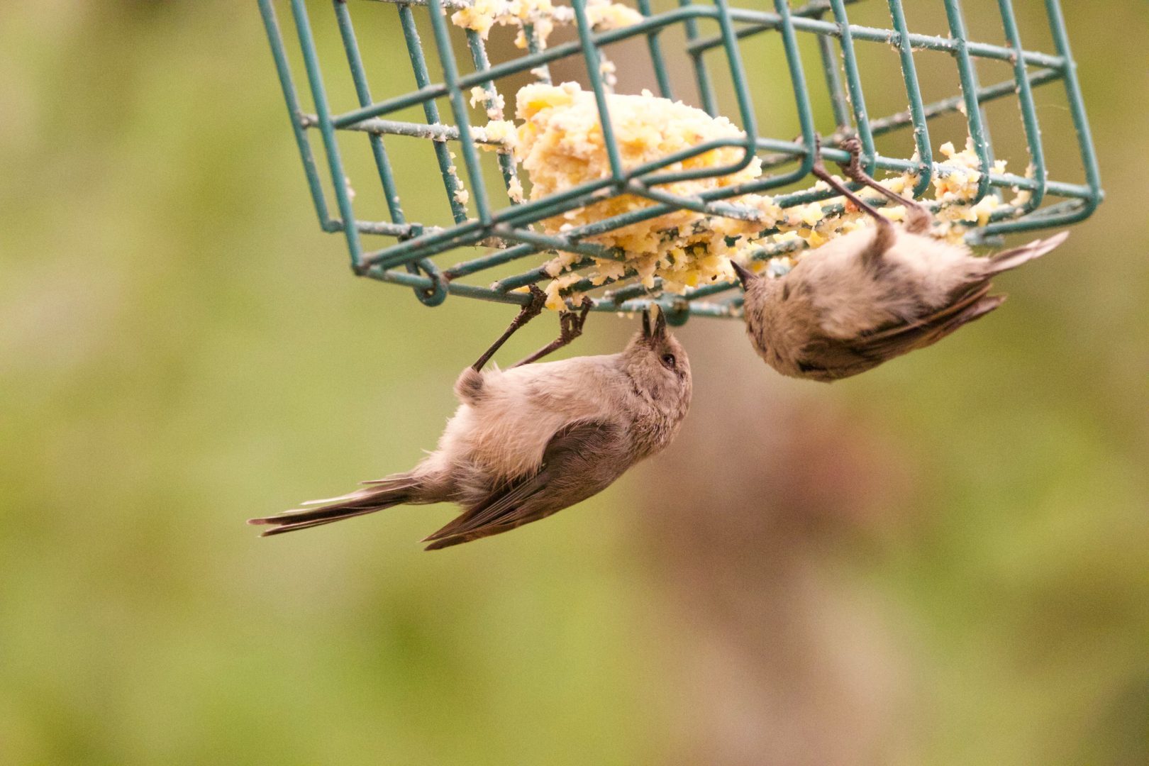 Bushtits at the suet feeder