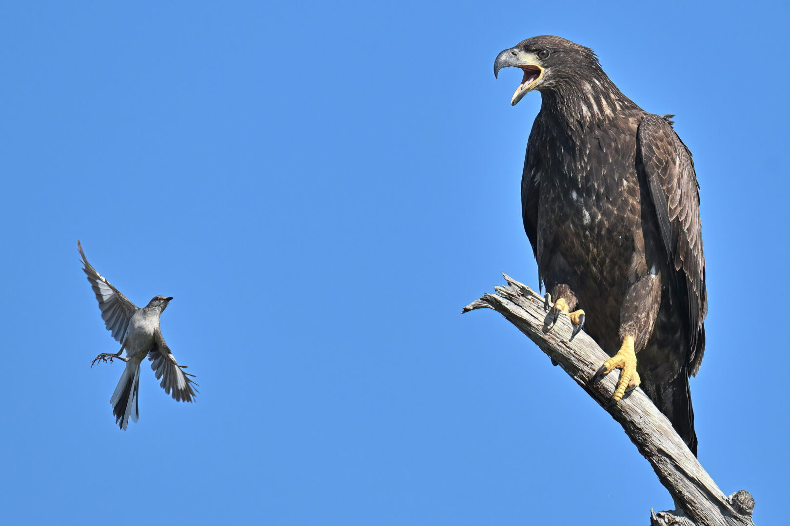 Mockingbird teasing an Eagle.