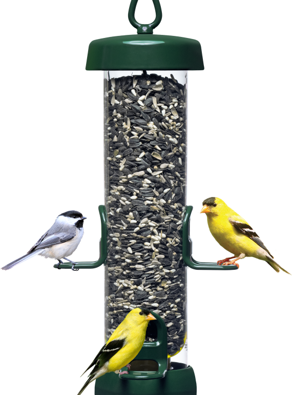 This high-quality, easy-to-fill and easy-to-clean tube feeder has 4 seed ports and will bring a fun variety of songbirds to your yard. This model is NOT squirrel-proof but it does come with Lifetime Care.