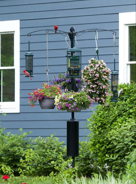 Le système de poteaux Raccoon Buster® Guardian est vraiment à l'épreuve des ratons laveurs. Il s'installe sans outil en 10 minutes et est conçu pour suspendre 4 mangeoires ou 4 paniers de fleurs. Le large diamètre du déflecteur dissuade les ratons laveurs. Leurs bras courts ne peuvent pas s'agripper.